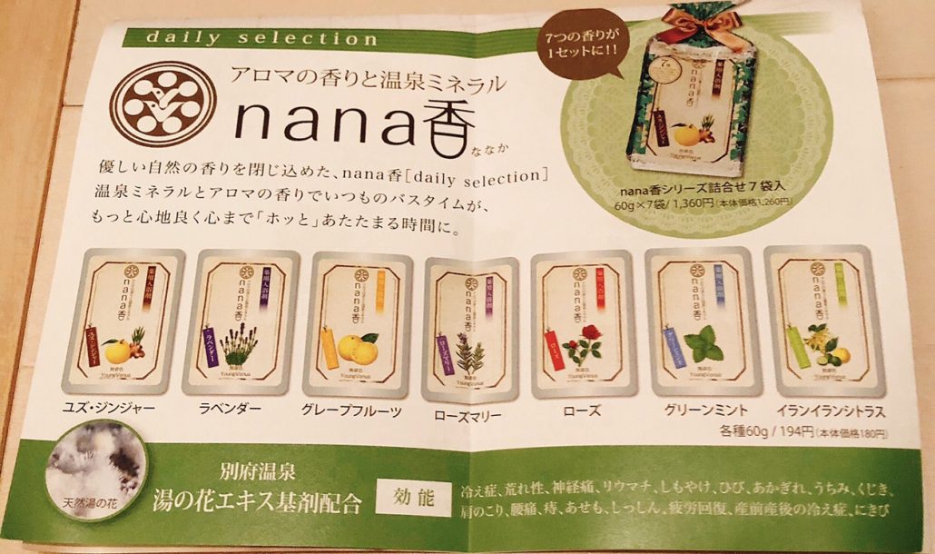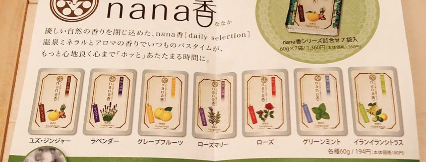 天然精油 アロマ入浴剤『nana香』 2018年2月25日/カテゴリ: 未分類 /作成者: のりおれアロマ入浴剤『nana香』に入ってみましたぁ〜〜 7種類の香りがあります。天然精油でほのかな香り‼︎もちろん『湯の花エキス』も入ってよく温まります。無着色なのでヤングビーナス歴30年の私には違和感あったけど、優しい香りがたまりませんでしたぁ〜〜♬ 投入直後は、にごり湯っぽく オォ〜〜♬って感じで、同時に優しい香り〜〜1、2分で済んだ色に変わります。 さっ‼️ 癒されて、明日からまた頑張ろうーー(^ ^) 共有:クリックして Twitter で共有 (新しいウィンドウで開きます)Facebook で共有するにはクリックしてください (新しいウィンドウで開きます)クリックして Tumblr で共有 (新しいウィンドウで開きます) 関連 https://youngvenus.saga.jp/wp-content/uploads/2018/02/img_2471.jpg 750 1266 のりおれ http://youngvenus.saga.jp/wp-content/uploads/2017/03/logo_340_156.png のりおれ2018-02-25 23:06:452018-02-25 23:06:45天然精油 アロマ入浴剤『nana香』